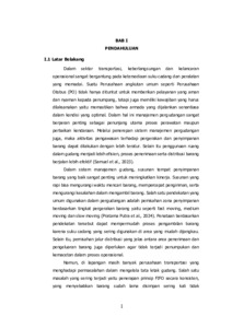 Ketersediaan dan pengelolaan suku cadang yang baik berperan penting dalam mendukung kelancaran operasional perusahaan transportasi. Laporan magang ini membahas kegiatan re-desain tata letak gudang suku cadang di PT Indo Transport Abdimas dengan tujuan meningkatkan efisiensi distribusi dan kemudahan pencarian barang. Metode yang digunakan meliputi observasi kondisi eksisting gudang, identifikasi permasalahan, serta perancangan ulang tata letak berdasarkan prinsip manajemen pergudangan modern, seperti pengelompokan zona penyimpanan (fast moving, medium moving, slow moving), pemisahan area masuk dan keluar barang, serta penerapan konsep 5R. Hasil redesain menunjukkan perbaikan pada kerapian penataan, kemudahan akses suku cadang, pengurangan waktu pencarian barang, serta menurunnya potensi kesalahan pengambilan (picking error). Dengan tata letak gudang yang lebih terstruktur, proses distribusi suku cadang menjadi lebih efisien dan mendukung kelancaran perawatan serta kesiapan operasional armada bus.