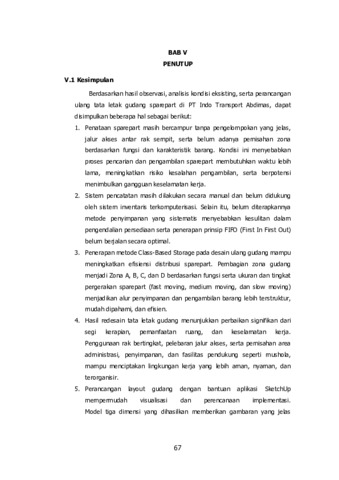 LAPORAN MAGANG II RE-DESAIN TATA LETAK GUDANG UNTUK MENINGKATKAN EFISIENSI DISTRIBUSI SUKU CADANG DI PT INDO TRANSPORT ABDIMAS