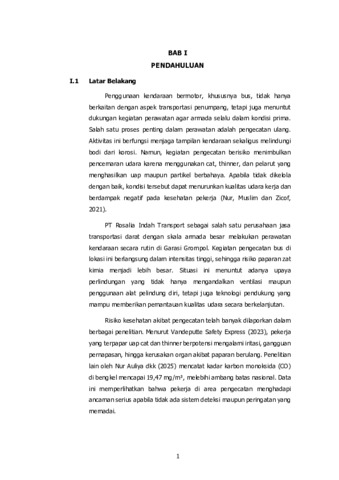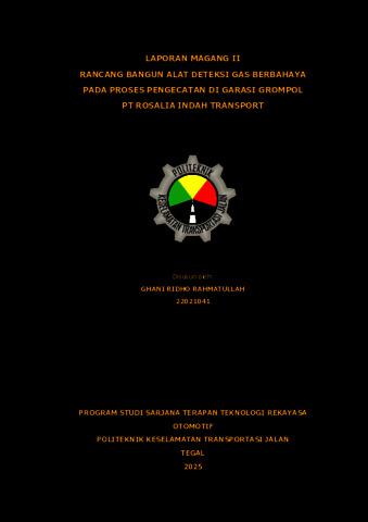 Penelitian dalam laporan magang ini membahas mengenai rancang bangun alat deteksi gas berbahaya sebagai upaya meningkatkan standar Kesehatan dan Keselamatan Kerja (K3) pada proses pengecatan bus di Garasi Grompol PT Rosalia Indah Transport. Fokus utama alat ini adalah untuk memitigasi risiko kesehatan akibat paparan uap cat dan thinner yang menghasilkan gas berbahaya seperti Karbon Monoksida (CO) dan Karbon Dioksida (CO2). Sistem ini dirancang menggunakan mikrokontroler ESP-32 dan sensor MQ-135 yang mampu memantau konsentrasi gas secara real-time, dengan tampilan data pada LCD 16x2 serta sistem peringatan dini berupa buzzer yang akan aktif jika kadar gas melampaui ambang batas aman (seperti 25 ppm untuk CO). Implementasi alat ini berhasil memberikan solusi teknis untuk mendeteksi bahaya di lingkungan kerja secara akurat, sehingga diharapkan dapat menciptakan lingkungan kerja yang lebih aman dan melindungi kesehatan para teknisi di bengkel tersebut.