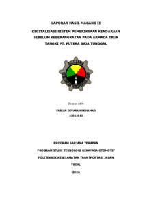 MUCHAMAD, FABIAN DEVARA (2026) LAPORAN MAGANG II DI PT PUTERA BAJA TUNGGAL. Project Report. POLITEKNIK KESELAMATAN TRANSPORTASI JALAN, TEGAL. (Submitted)
