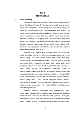 Tingginya angka kecelakaan lalu lintas di Indonesia, yang mencapai 137.410 kejadian pada periode 2025, sebagian besar dipicu oleh faktor kelalaian manusia (human error) dan masalah teknis kendaraan. Salah satu risiko fatal pada operasional truk adalah sistem penguncian kabin (tilt cabin) yang tidak sempurna, yang dapat menyebabkan kabin terjungkit ke depan secara tiba-tiba saat pengereman mendadak. Laporan ini membahas mengenai perancangan dan pengujian Prototipe Alat Peringatan Pengunci Kabin Truk di PT Hino Motors Manufacturing Indonesia untuk meminimalisir risiko tersebut. Penelitian ini menggunakan metode Research and Development (R&D) yang mencakup tahap identifikasi masalah, pengumpulan data, perancangan, hingga pengujian alat. Prototipe ini dibangun menggunakan mikrokontroler ESP32 sebagai pengendali utama yang terintegrasi dengan sensor proximity untuk mendeteksi keberadaan logam pengunci secara otomatis tanpa kontak fisik. Sistem peringatan diwujudkan melalui output visual pada layar LCD dan output audio berupa buzzer yang akan aktif apabila kabin terdeteksi belum terkunci sempurna sebelum kendaraan dioperasikan.Hasil pengujian menunjukkan bahwa sistem mampu mengidentifikasi status pengunci kabin secara akurat dan memberikan respon peringatan secara real-time kepada pengemudi di dalam kabin. Implementasi teknologi ini diharapkan dapat meningkatkan standar kelaikan kendaraan serta memberikan rasa aman dengan memantau kondisi pengunci secara mandiri guna mencegah kecelakaan fatal akibat kelalaian teknis maupun faktor manusia.