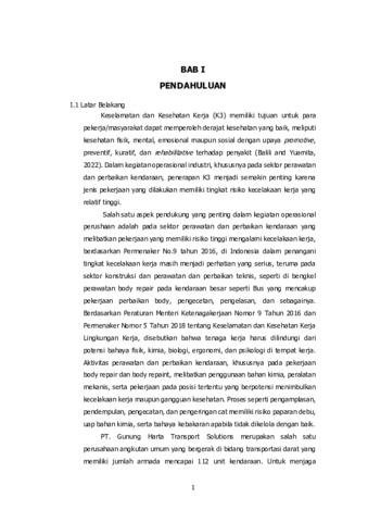 PERENCANAAN SISTEM MANAJEMEN BENGKEL DI PT GUNUNG HARTA TRANSPORT SOLUTIONS DALAM BODY REPAINT DAN EVALUASI K3 BERBASIS HIRADC DAN BOW-TIE