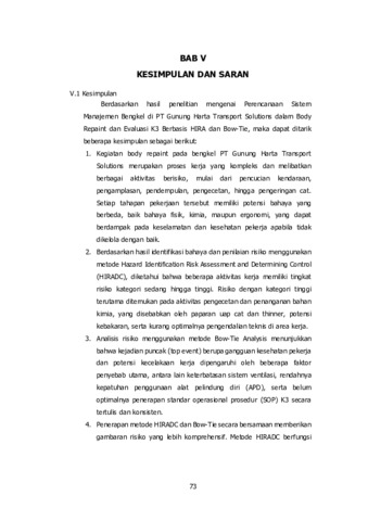 KHARBI, MUHAMMAD FAISAL (2026) PERENCANAAN SISTEM MANAJEMEN BENGKEL DI PT GUNUNG HARTA TRANSPORT SOLUTIONS DALAM BODY REPAINT DAN EVALUASI K3 BERBASIS HIRADC DAN BOW-TIE. Project Report. POLITEKNIK KESELAMATAN TRANSPORTASI JALAN, TEGAL. (Submitted)