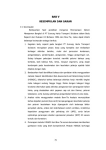 Kegiatan perawatan dan perbaikan kendaraan, khususnya pada proses body repaint, memiliki potensi bahaya dan risiko kerja yang tinggi sehingga memerlukan sistem manajemen bengkel yang terstruktur serta penerapan keselamatan dan kesehatan kerja (K3) yang optimal. Laporan magang ini bertujuan untuk merencanakan sistem manajemen bengkel pada proses body repaint di PT Gunung Harta Transport Solutions serta melakukan evaluasi risiko K3 menggunakan metode HIRADC (Hazard Identification, Risk Assessment, and Determining Control) dan Bow-Tie Analysis. Metode yang digunakan meliputi observasi langsung, identifikasi bahaya, penilaian risiko secara semi-kuantitatif, serta analisis penyebab dan konsekuensi risiko. Hasil penelitian menunjukkan bahwa pada setiap tahapan pekerjaan, seperti pencucian, pengamplasan, pengecetan, pengeringan, pembersihan alat, transport bahan, dan pendempulan, terdapat berbagai potensi bahaya seperti paparan bahan kimia, debu, risiko kebakaran, hingga kecelakaan kerja akibat peralatan. Tingkat risiko yang dihasilkan bervariasi dari rendah hingga tinggi, dengan beberapa aktivitas masuk kategori risiko tinggi yang memerlukan pengendalian segera. Penerapan metode HIRADC mampu mengidentifikasi dan mengklasifikasikan tingkat risiko secara sistematis, sedangkan Bow-Tie Analysis memberikan gambaran hubungan antara penyebab, peristiwa utama, dan dampak yang ditimbulkan serta langkah pengendaliannya. Rekomendasi yang dihasilkan meliputi penggunaan alat pelindung diri (APD) secara wajib, perbaikan ventilasi, pengelolaan bahan kimia sesuai standar, serta peningkatan prosedur kerja yang aman. Dengan penerapan sistem manajemen bengkel yang terintegrasi dengan analisis risiko, diharapkan dapat meningkatkan keselamatan kerja, mengurangi potensi kecelakaan, serta mendukung tercapainya zero fatal accident di lingkungan kerja.