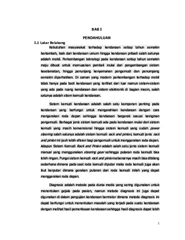 | Uncontrolled Keywords: | Pengujian Sistem Kemudi, Diagnosis dan Prognosis, Perawatan. |